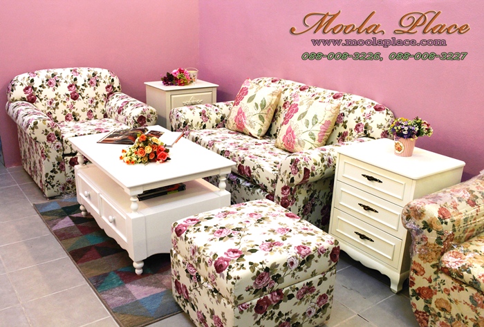 โซฟาแบบเซต 2+1+1 เป็นโซฟาที่มาเป็นชุด บุผ้าลายดอกกุไม้สไตล์วินเทจ มีโครงสร้างที่แข็งแรง เบาะถอดซักได้ค่ะ และมีความหนานุ่ม นั่งสบาย