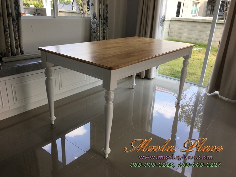 โต๊ะรับประทานอาหารแกะลายหลุยส์ ทำสีพ่นขาว Top ทำสีธรรมชาติ ขนาด 160 x 90 x 75 ซม.
