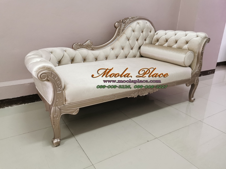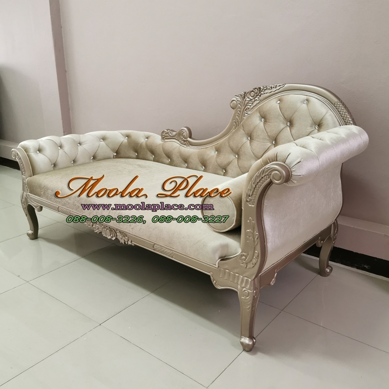 โซฟา Daybed แกะสลักหลุยส์ แบบโอบปลาย ดึงกระดุมคริสตัล พร้อมหมอนอิงกลมเข้าชุด