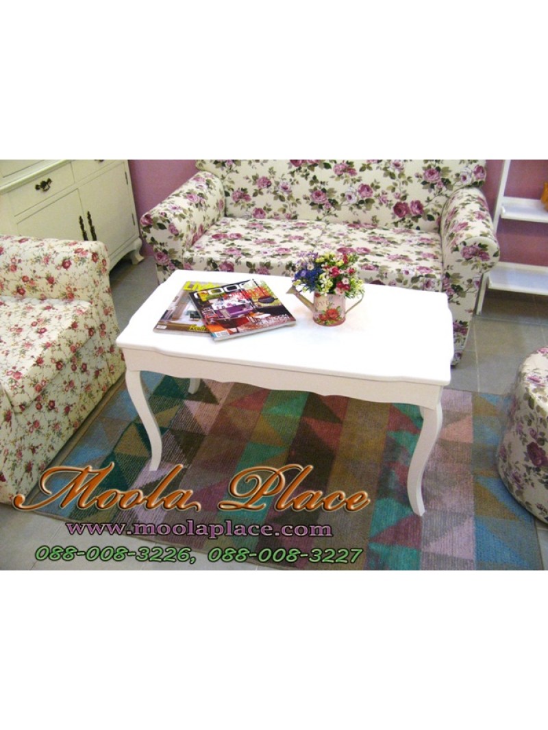 โต๊ะกลางชุดรับแขก สีขาว สไตล์วินเทจ ขนาด กว้าง 90 x ลึก 45 x สูง 50 ซม.