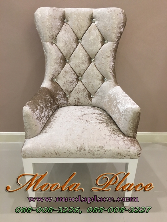 เก้าอี้พนักโค้งหลังขมวด บุผ้าผ้ากำมะหยี่ ลูกค้าสามารถเลือกสีขาและเปลี่ยนผ้าหุ้มได้..