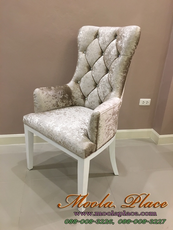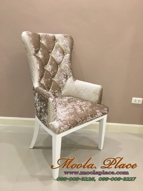เก้าอี้พนักโค้งหลังขมวด บุผ้าผ้ากำมะหยี่ ลูกค้าสามารถเลือกสีขาและเปลี่ยนผ้าหุ้มได้