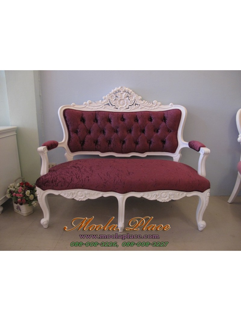 โซฟาหลุยส์รับแขก โครงไม้สัก 2 ที่นั่ง บุผ้ากำมะหยี่ สามารถทำสีขาวได้ แกะลายสวยงาม ลูกค้าสามารถเลือกเปลี่ยนผ้าหุ้มได้