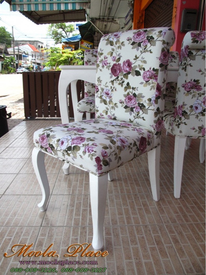 เก้าอี้ขาสิงห์หลังขมวด บุผ้าลายดอก สามารถเลือกเปลี่ยนลายผ้าได้