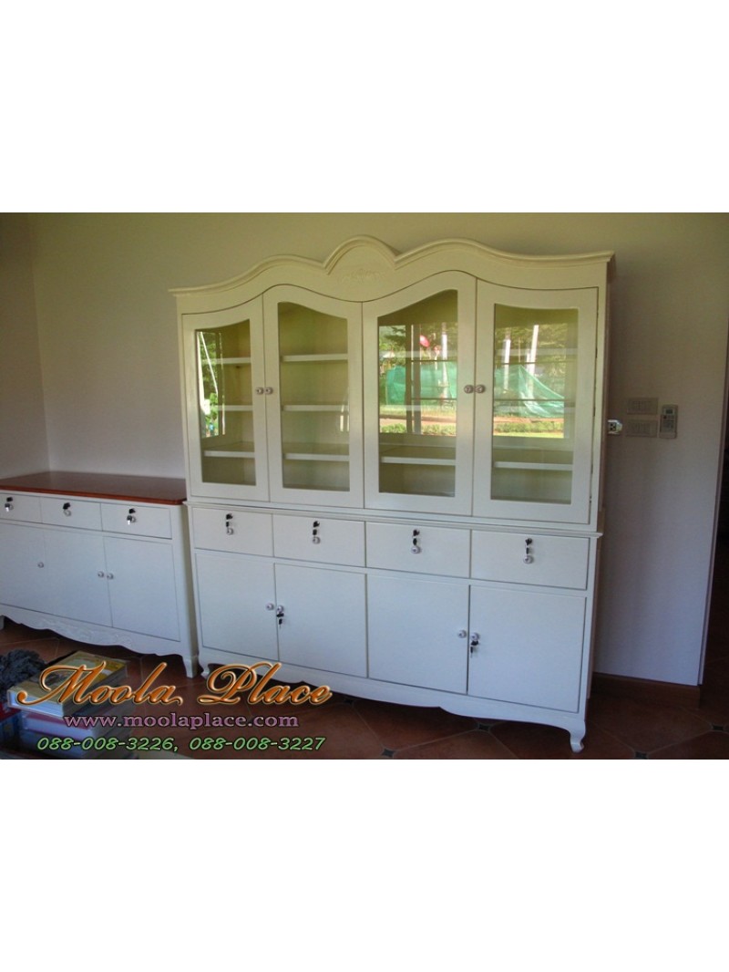 ตู้โชว์ 2 ตอน สไตล์วินเทจ ทรงโค้ง ขนาด 180 x 45 x 190 ซม.