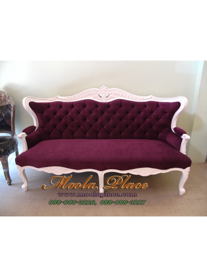 โซฟาหลุยส์โอบแคททรียาไม้สัก แกะลายสวยงาม ทำสีขาวเดินทอง ดึงกระดุมตอกหมุด บุผ้ากำมะหยี่ ลูกค้าสามา..
