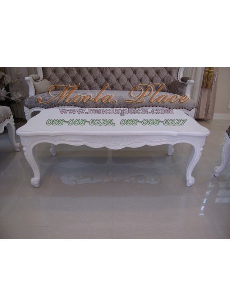 โต๊ะกลางหลุยส์หลุยส์รับแขก ไม้สัก แกะลายสวยงาม สีพ่นขาว ขนาด กว้าง 120 ลึก 60 สูง 43 ซม. &nb..