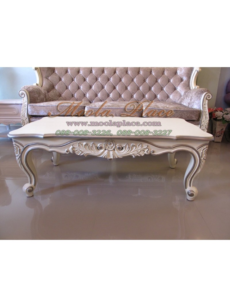 โต๊ะกลางหลุยส์หลุยส์รับแขก ไม้สัก แกะลายสวยงาม สีพ่นขาว ขนาด กว้าง 120 ลึก 60 สูง 43 ซม. &nb..