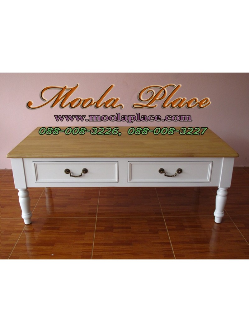 โต๊ะกลางชุดรับแขก 2 ลิ้นชัก ท๊อปสีธรรมชาติ ตัวโต๊ะสีขาว ขนาด 120x60x สูง 45 ซม.