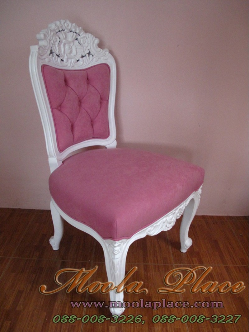เก้าอี้หลุยส์ไม้สัก แกะลายสวยงาม แบบไม่มีท้าวแขน ลูกค้าสามารถเลือกเปลี่ยนผ้าหุ้มได้