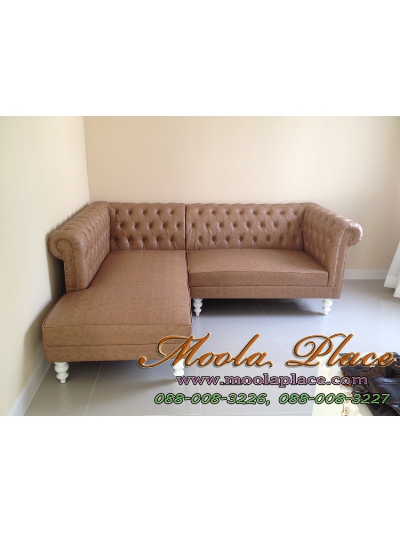 โซฟาวินเทจเข้ามุม (L-SHAPE) ขากลึงเย็บกระดุม บุหนัง PU ขนาด 220 ซม. ลูกค้าสามารถเลือกเปลี่ยนผ้าได้