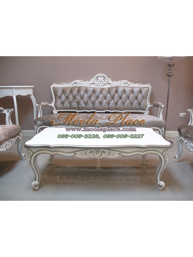 โต๊ะกลางชุดรับแขก สีขาว สไตล์วินเทจ ขนาด กว้าง 90 x ลึก 45 x สูง 50 ซม.