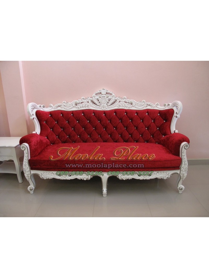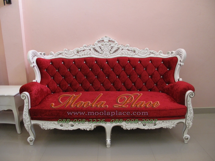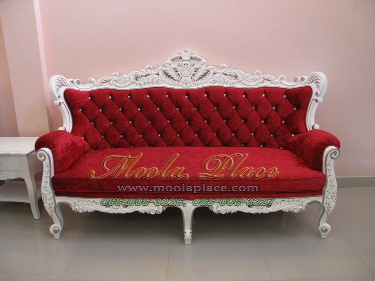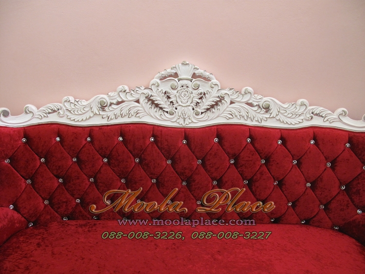 โซฟาหลุยส์โอบกุหลาบใหญ่ขนาด 3 ที่นั่ง ไม้สัก แกะลายสวยงาม ทำสีขาวเดินเงิน ดึงกระดุมคริสตัล บุผ้ากำมะหยี่ ลูกค้าสามารถเลือกเปลี่ยนผ้าหรือหนังในการหุ้มได้