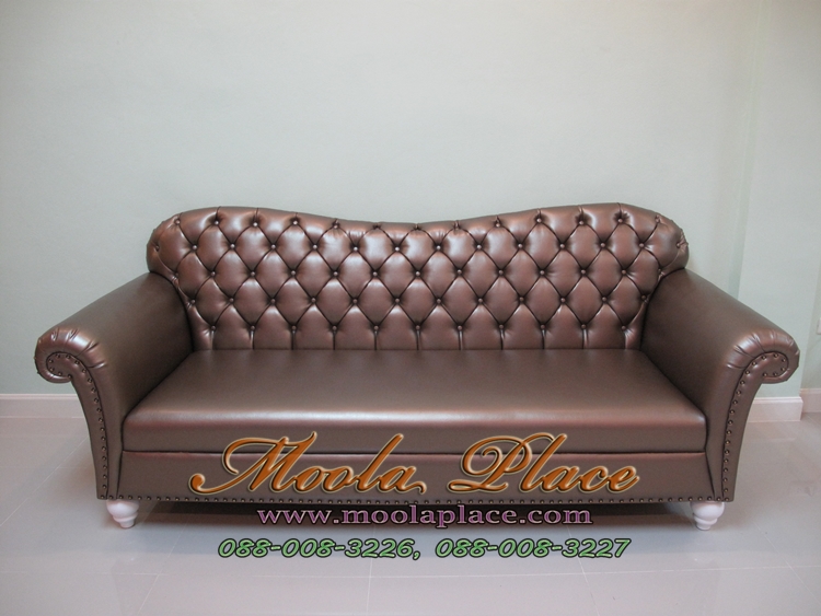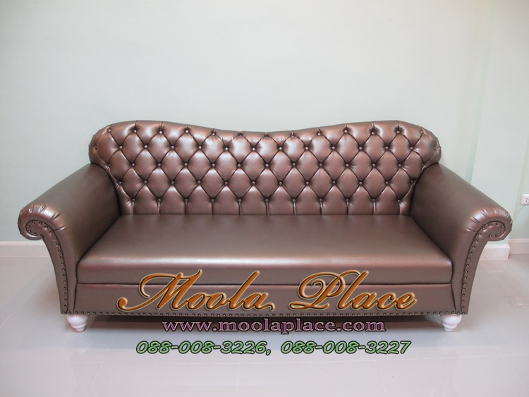 โซฟาอาร์มแชร์ขากลึงเย็บกระดุม 3 ที่นั่ง ขนาด 220 ซ.ม. บุหนัง PU ลูกค้าสามารถเลือกเปลี่ยนสีหนังหรือผ้..
