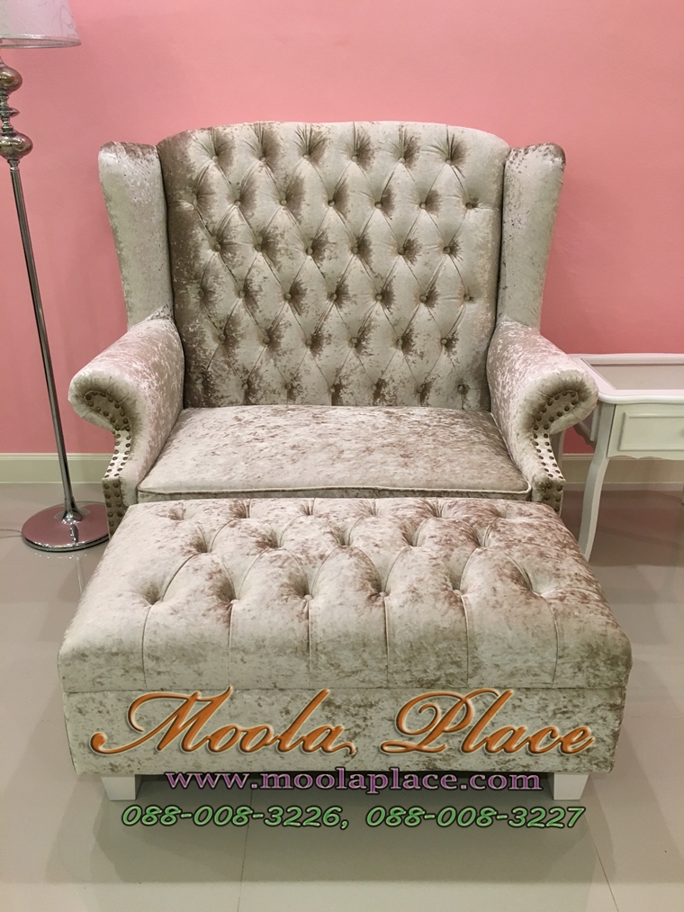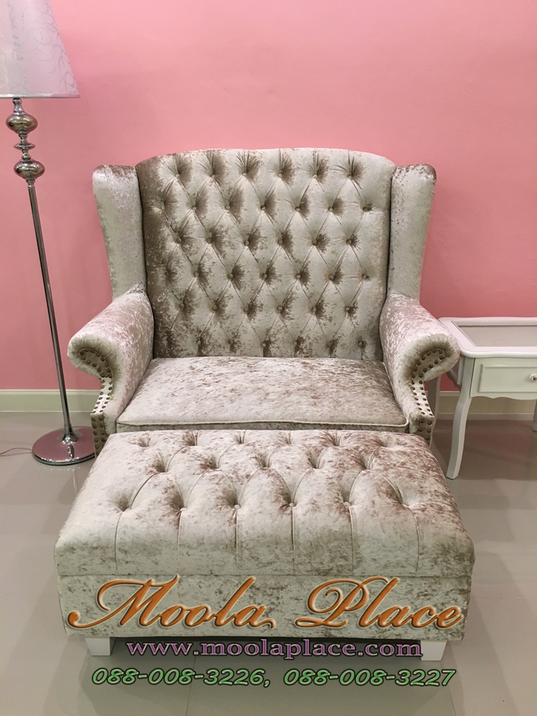 โซฟา Wing Chair บุผ้ากำมะหยี่ พร้อมที่วางเท้า ขนาด กว้าง 120 x ลึก 85 x สูง 110 สามารถเปลี่ยนสีและลายผ้าได้