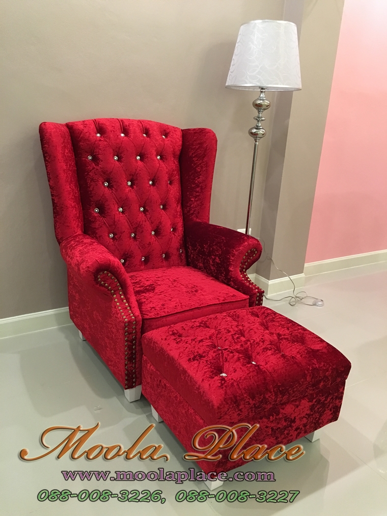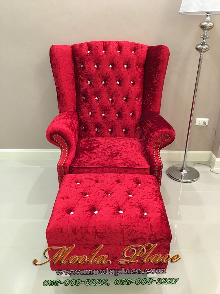 โซฟา Wing Chair 2 ที่นั่ง ขนาด 150 ซม บุผ้ากำมะหยี่อย่างดี พร้อมสตูลยาว ไม่รวมคริสตัล ขนาด กว้าง ..
