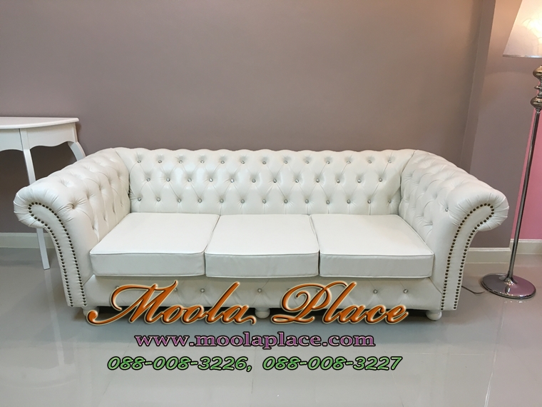 โซฟาอาร์มแชร์ขากลึงเย็บกระดุม 3 ที่นั่ง ขนาด 220 ซ.ม. บุหนัง PU ลูกค้าสามารถเลือกเปลี่ยนผ้าหุ้มได้