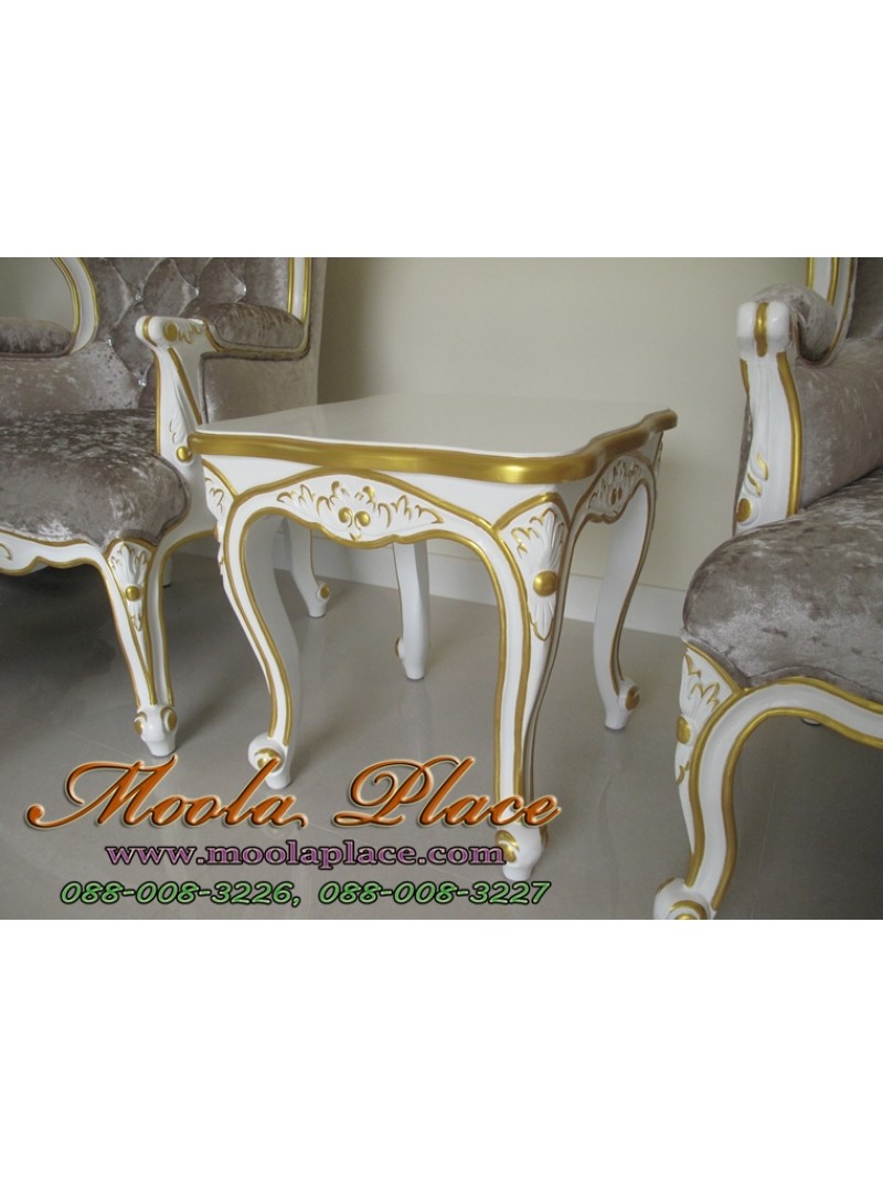 โต๊ะข้างหลุยส์ไม้สักแคทรียา ทำสีขาวเดินทอง แกะสลักลาย สไตล์วินเทจ ขนาด 50x50x50 ซม. (สามารถเปลี่ยนสีได้ราคาเริ่มที่ 5,400 บาท )