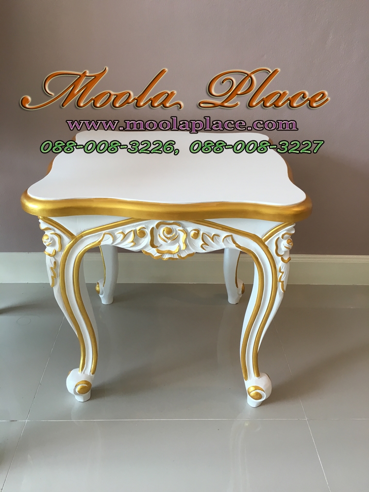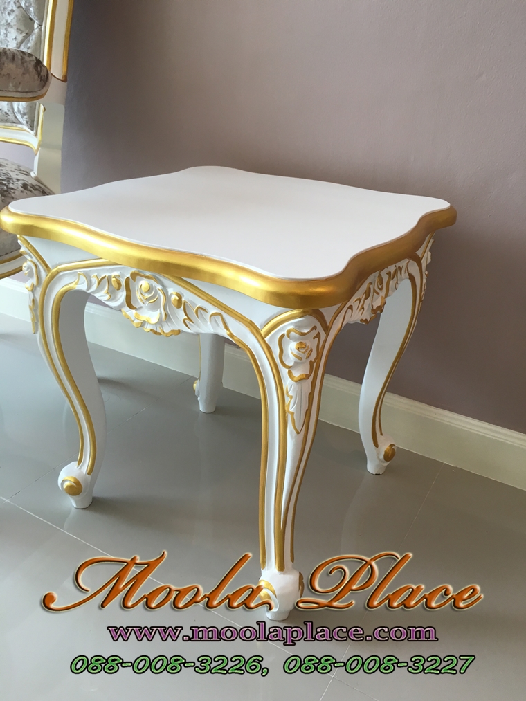โต๊ะข้างหลุยส์รับแขกไม้สัก ทำสีขาวเดินทอง แกะสลักลาย สไตล์วินเทจ ขนาด 50x50x50 ซม. (สามารถเปลี่ยนสีได้ราคาเริ่มที่ 5,400 บาท )