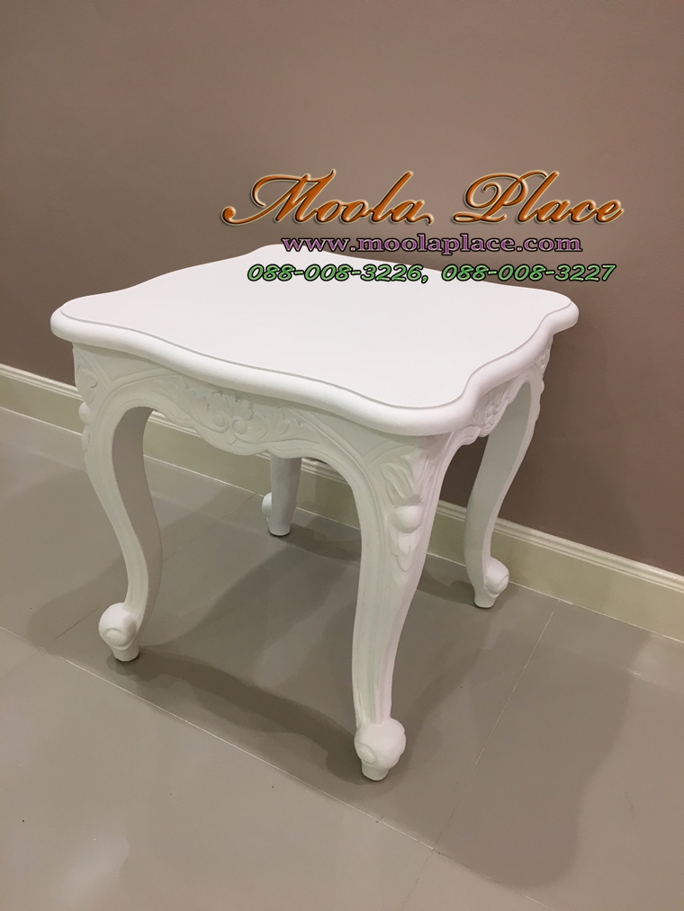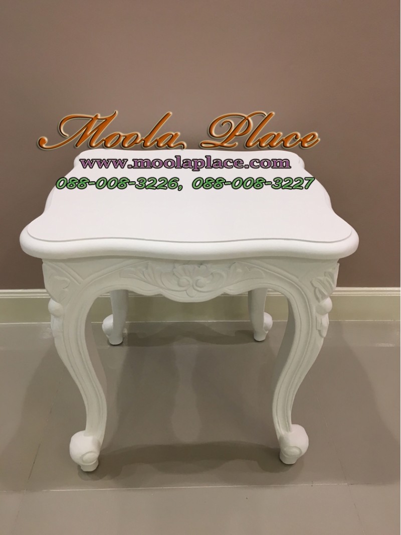 โต๊ะข้างหลุยส์ไม้สักแคทรียา ทำสีขาว แกะสลักลาย สไตล์วินเทจ ขนาด 50x50x50 ซม. (สามารถเปลี่ยนสีได้ )