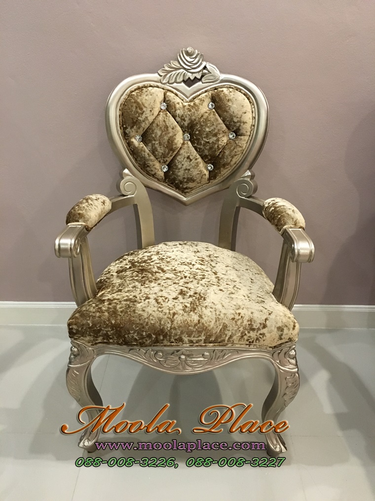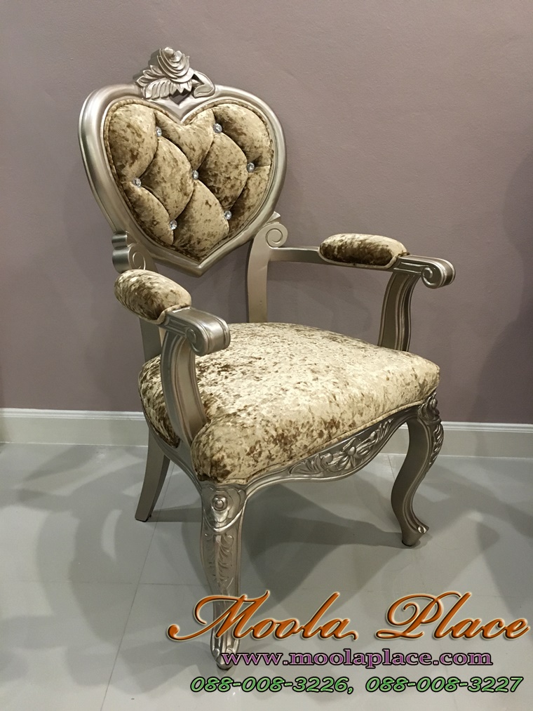 เก้าอี้ขาสิงห์หลุยส์ ทรงหัวใจมีท้าวแขน ไม้สัก ทำสีบอร์น แกะลายสวยงาม บุผ้ากำมะหยี่ สามารถเลือกเปลี่ยนสีผ้าได้