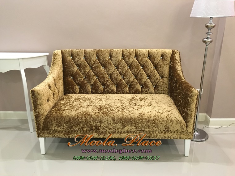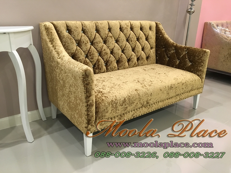 โซฟาอาร์มแชร์ขากลึงพนักนูนเย็บกระดุมคริสตัล ขนาด 220 ซม. บุผ้ากำมะหยี่ ลูกค้าสามารถเลือกเปลี่ยนผ้..