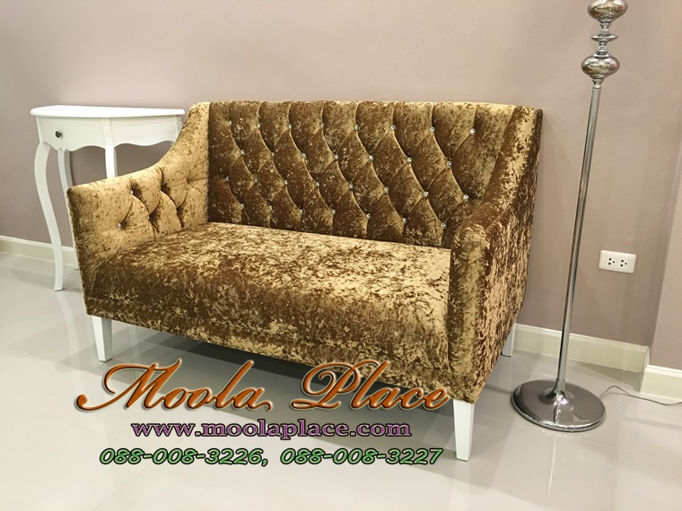 โซฟาอาร์มแชร์พนักเว้าขากลึงเย็บกระดุมคริสตัลที่พนัก บุกำมะหยี่ ขนาด 220 ซม. 3 ที่นั่ง ลูกค้..