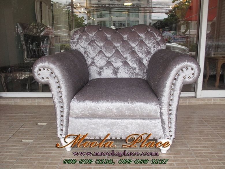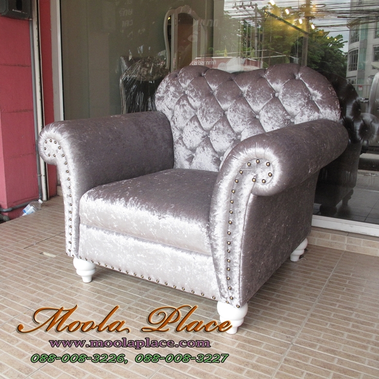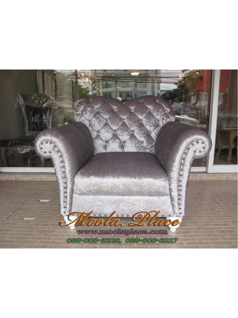 โซฟาอาร์มแชร์ขากลึงพนักนูนเย็บกระดุมคริสตัล ขนาด 220 ซม. บุผ้ากำมะหยี่ ลูกค้าสามารถเลือกเปลี่ยนผ้..