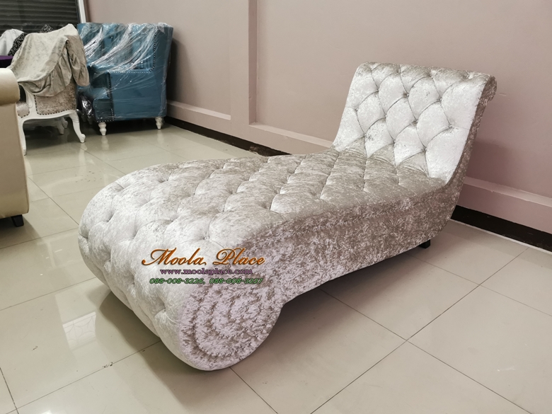 โซฟา Bed (Daybed) หลังขมวด ดึงกระดุมคริสตัล หุ้มผ้ากำมะหยี่ (ตัว หนัง/ผ้า มีให้เลือกหลายเฉดสี)