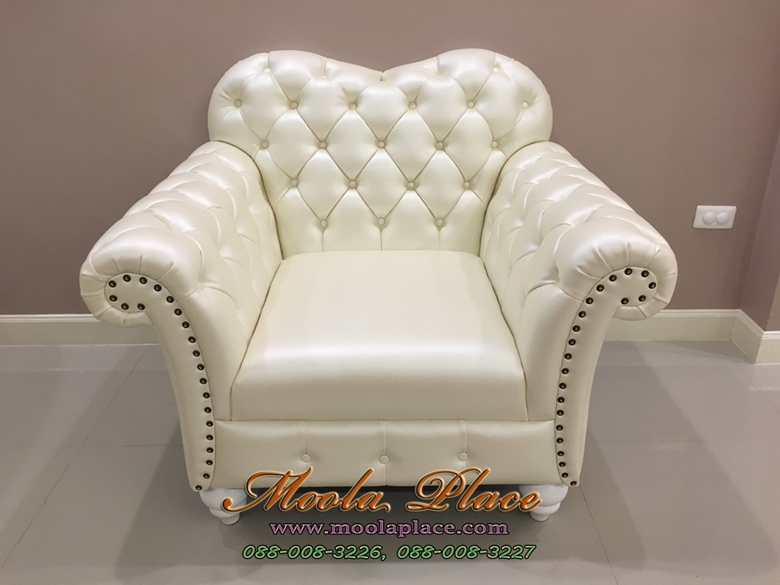 โซฟา Grand Wing ขากลึง ขนาด 1 ที่นั่ง เย็บกระดุม ตอกหมุดรอบตัว พร้อมสตูล และหมอนอิง บุผ้าก..