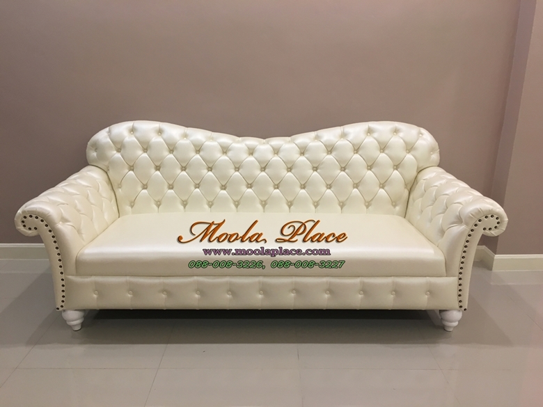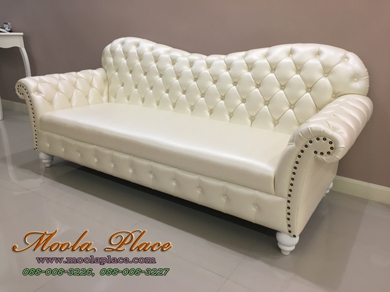 โซฟาอาร์มแชร์ขากลึงเย็บกระดุม 3 ที่นั่ง ขนาด 220 ซ.ม. บุหนัง PU ลูกค้าสามารถเลือกเปลี่ยนสีหนังหรือผ้..