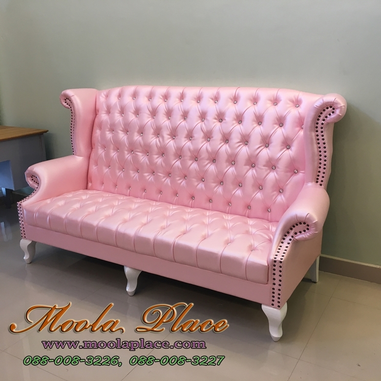 โซฟาอาร์มแชร์พนักเว้าขากลึงเย็บกระดุมคริสตัลที่พนัก บุกำมะหยี่ ขนาด 220 ซม. 3 ที่นั่ง ลูกค้..