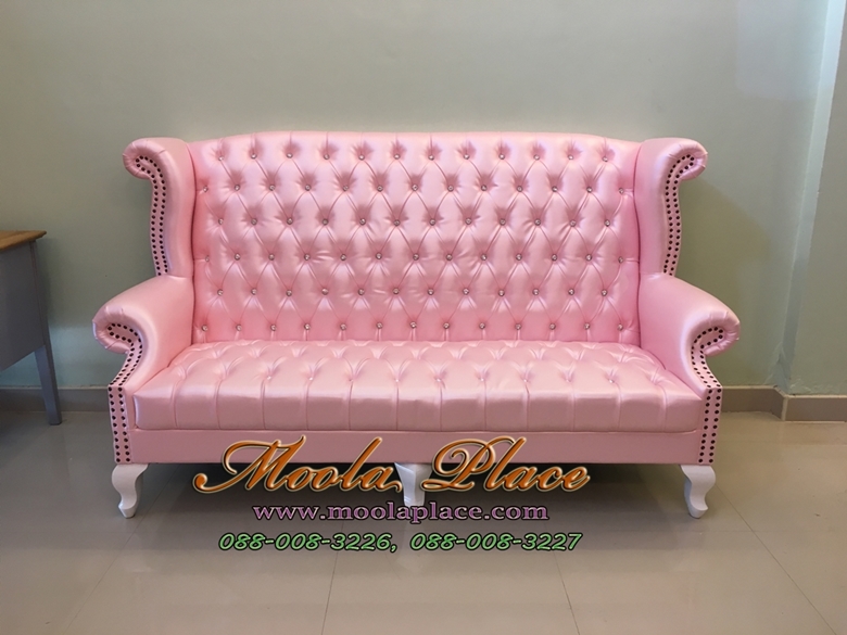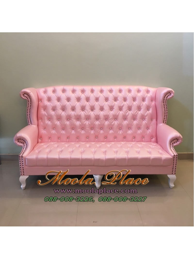 โซฟา Wing Chair ขนาด 180 ซม. ปีกโค้ง ขาสิงห์ ตอกหมุด สวยหรู บุผ้ากำมะหยี่ ราคาไม่รวมคริสตัล สามารถเปลี่ยนสีหนังหรือตัวผ้าได้