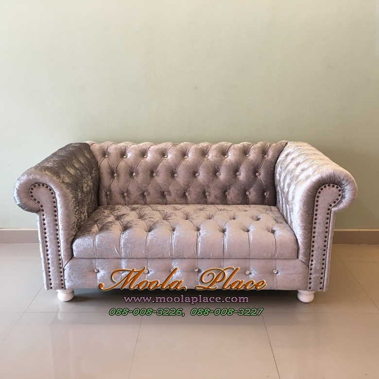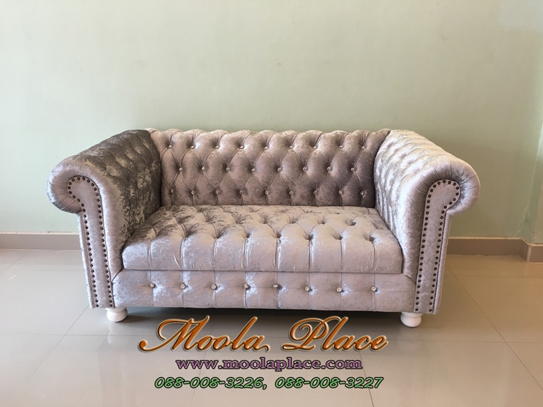 โซฟาอาร์มแชร์พนักเว้าขากลึงเย็บกระดุมคริสตัลที่พนัก บุกำมะหยี่ ขนาด 220 ซม. 3 ที่นั่ง ลูกค้..