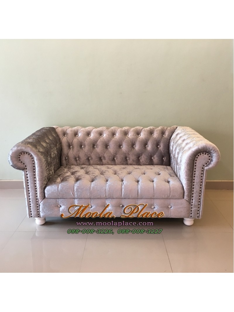 โซฟาอาร์มแชร์ขากลึงพนักนูนเย็บกระดุมคริสตัล ขนาด 220 ซม. บุผ้ากำมะหยี่ ลูกค้าสามารถเลือกเปลี่ยนผ้..