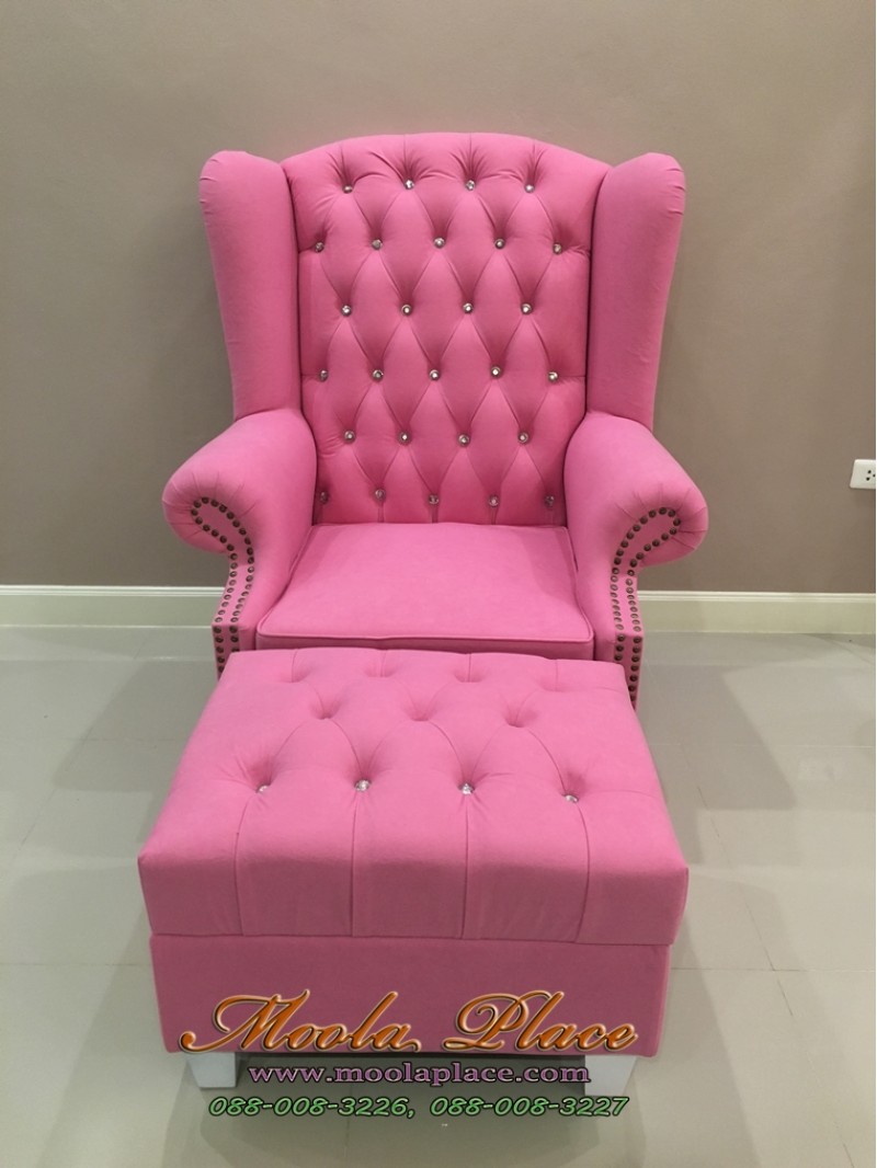 โซฟา Wing Chair 1 ที่นั่ง ขาไม้เหลี่ยม พร้อมที่สตูลวางเท้า บุผ้ากำมะหยี่ ราคาไม่รวมคริสตัล สามารถเปลี่ยนสีหนังหรือตัวผ้าได้