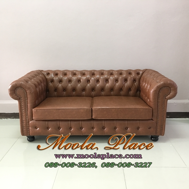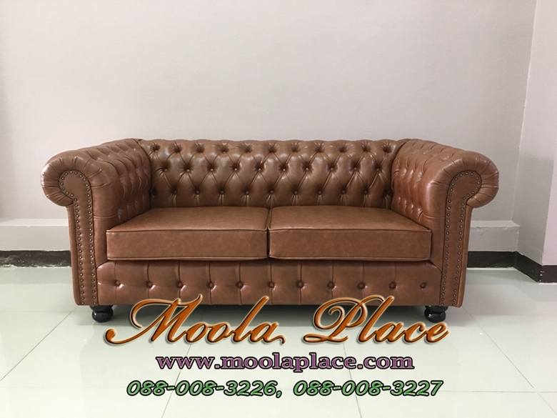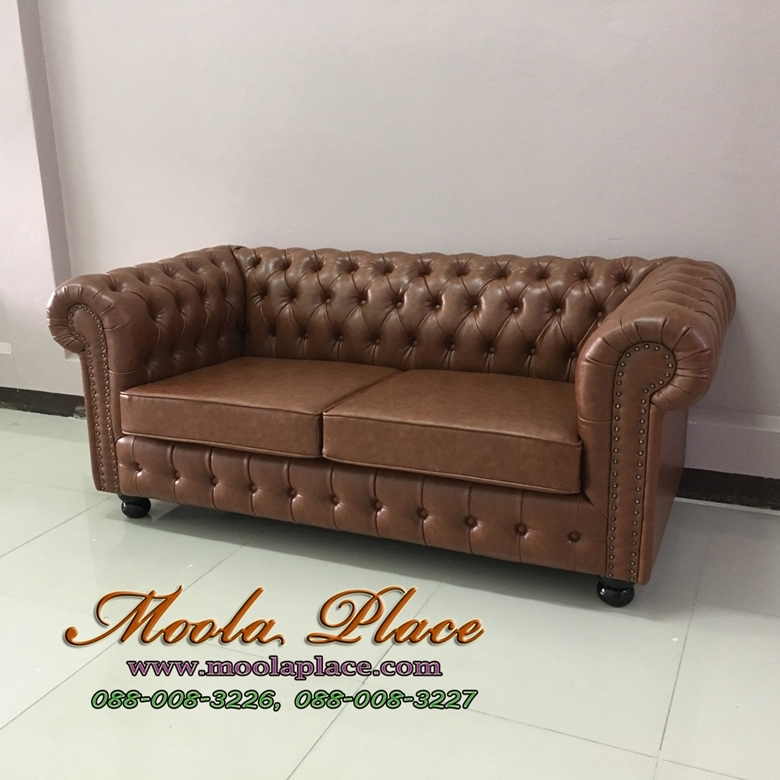 โซฟาอาร์มแชร์พนักเท่าขากลึงเย็บกระดุม ขนาด 160 ซม. บุหนัง PU ลูกค้าสามารถเลือกเปลี่ยนหนงหรือผ้าหุ..