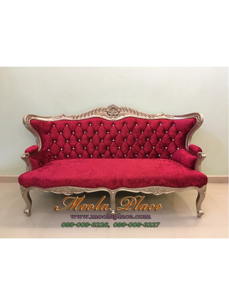 โซฟาหลุยส์รับแขก โครงไม้สัก 2 ที่นั่ง บุผ้ากำมะหยี่ สามารถทำสีขาวได้ ลูกค้าสามารถเลือกเปลี่ย..