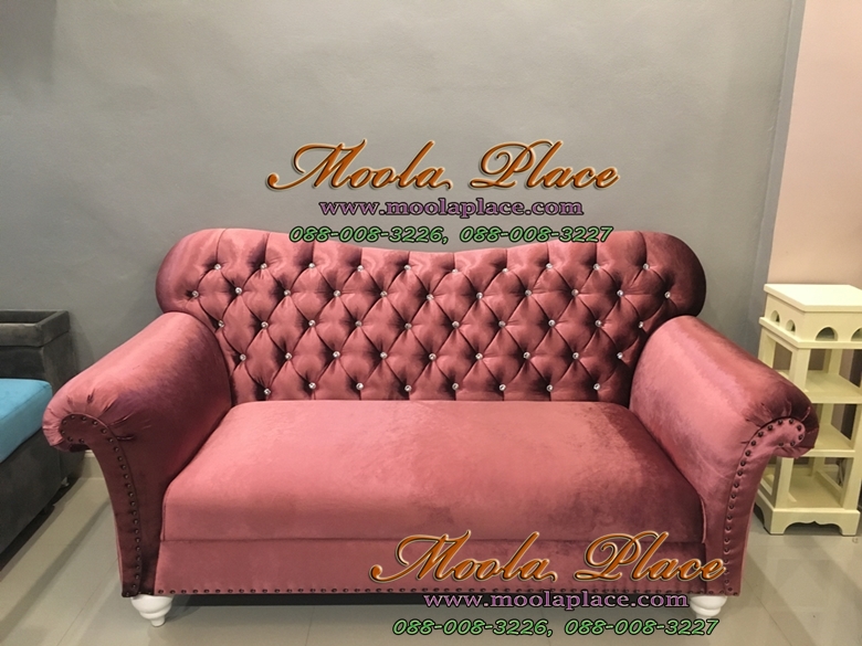 โซฟาอาร์มแชร์พนักเว้าขากลึงเย็บกระดุมคริสตัลที่พนัก บุกำมะหยี่ ขนาด 220 ซม. 3 ที่นั่ง ลูกค้..
