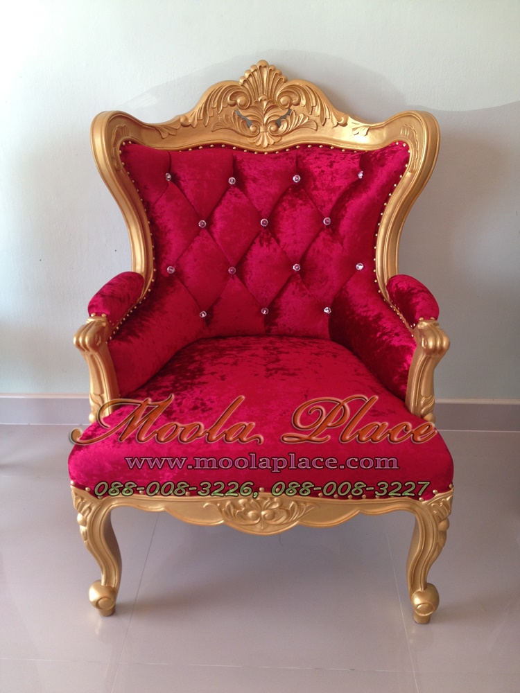 เก้าอี้หลุยส์ ไม้สัก 1 ที่นั่ง แกะลายสวยงาม ทำสีพ่นทอง บุผ้ากำมะหยี่