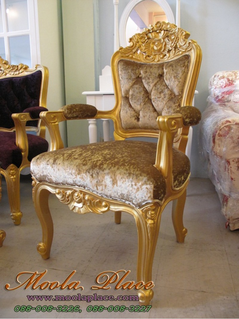 เก้าอี้หลุยส์ ไม้สัก 1 ที่นั่ง แกะลายสวยงาม ทำสีพ่นทอง บุผ้ากำมะหยี่