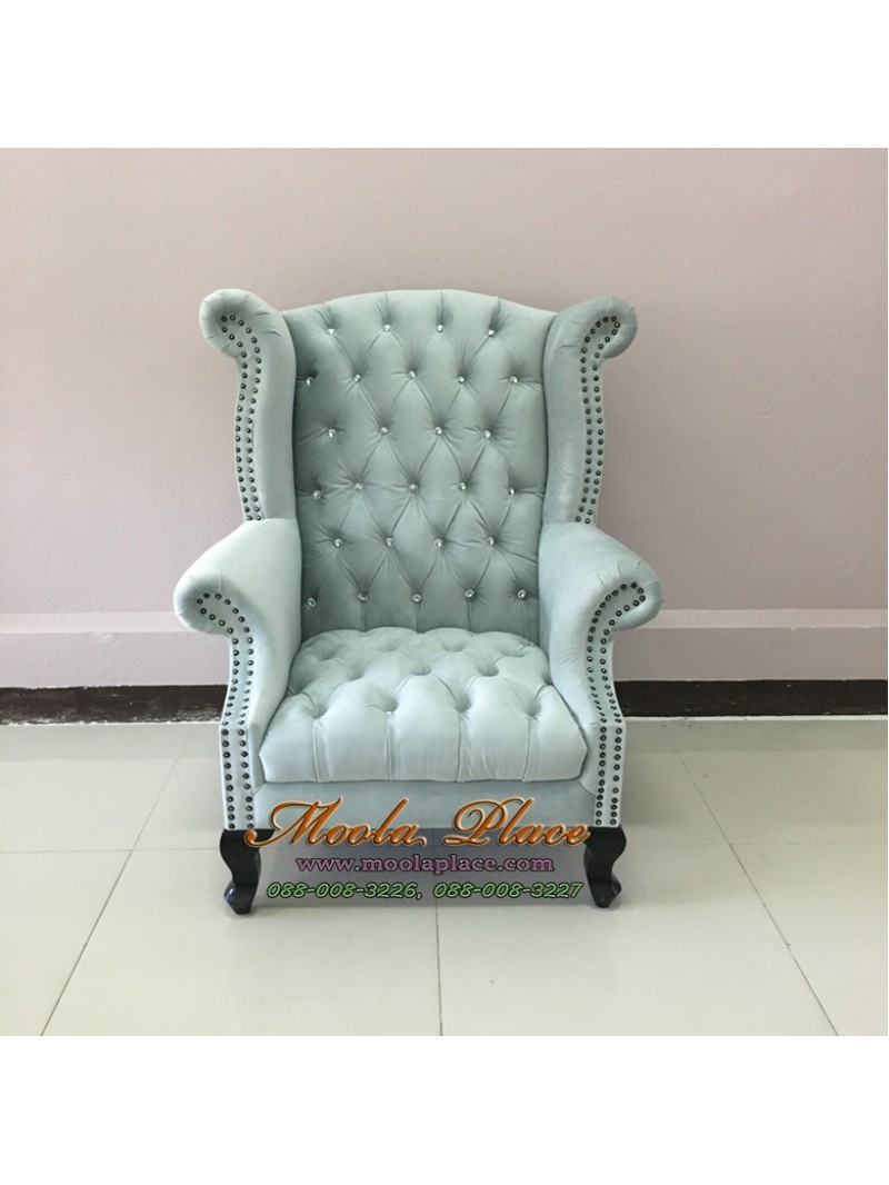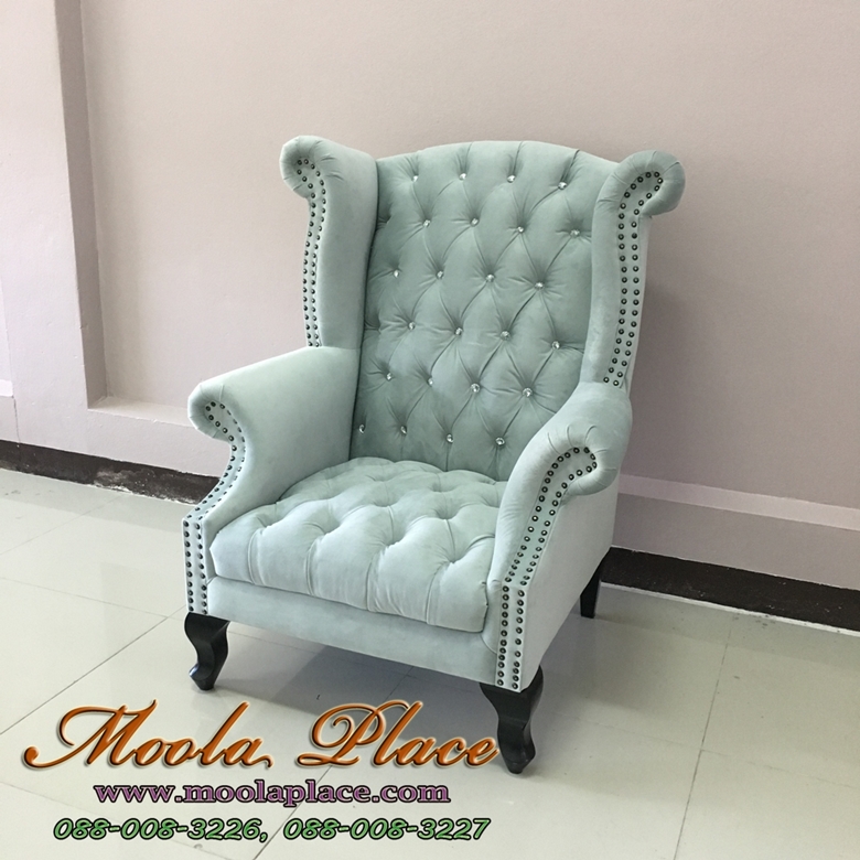 โซฟา Wing Chair 1 ที่นั่ง ปีกโค้ง ขาสิงห์สวยหรู บุผ้ากำมะหยี่ สามารถเปลี่ยนสีหนังหรือตัวผ้าได้