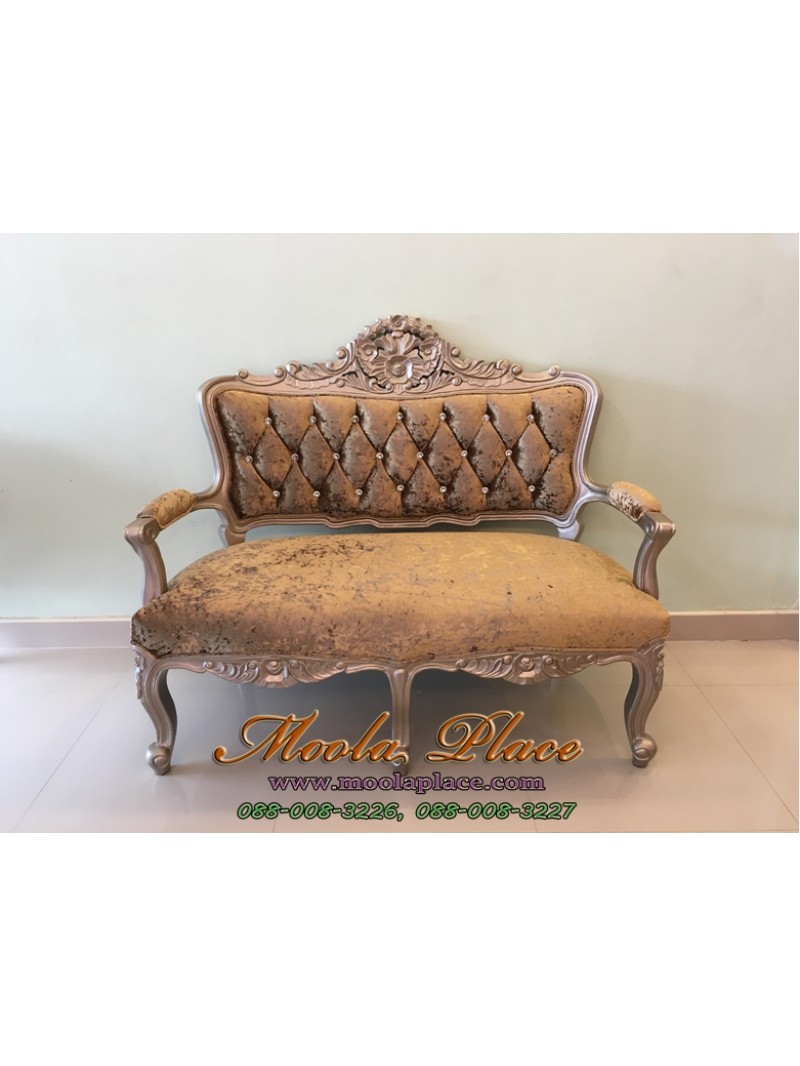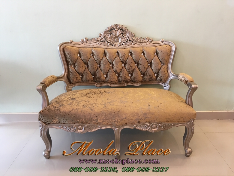 โซฟาหลุยส์รับแขก โครงไม้สัก 2 ที่นั่ง บุผ้ากำมะหยี่ สามารถทำสีขาวได้ ลูกค้าสามารถเลือกเปลี่ย..