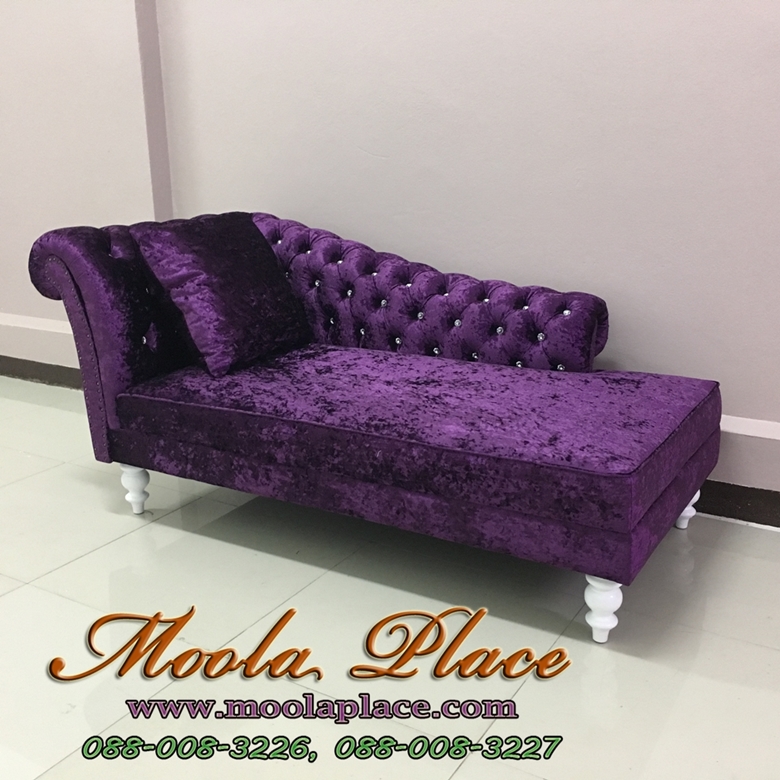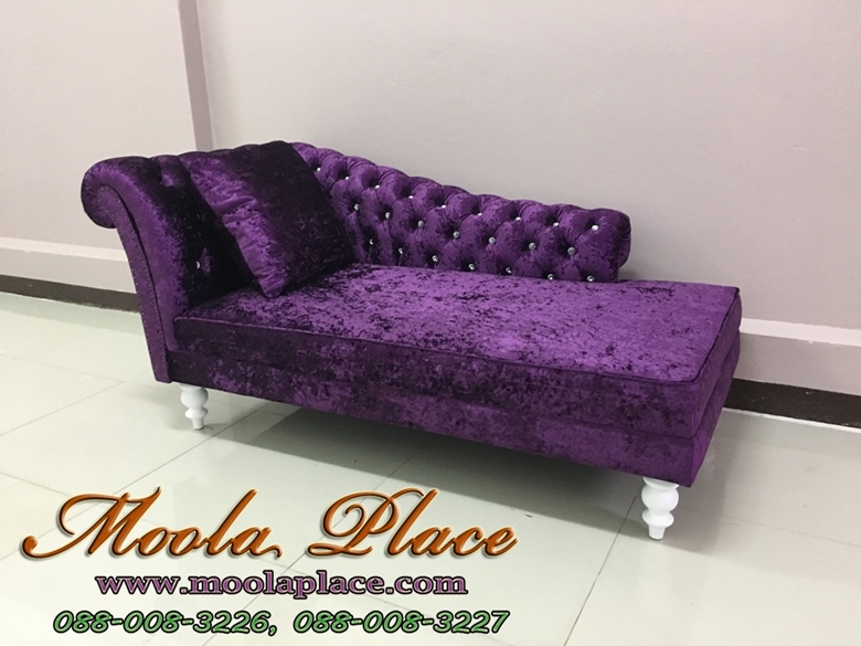 โซฟา Bed (Daybed) สไตล์วินเทจ หุ้มด้วยผ้ากำมะหยี่ สวยดูดีสวยหรูมีสไตล์ตกแต่งด้วยขากลึงพร้อมเย็บกร..