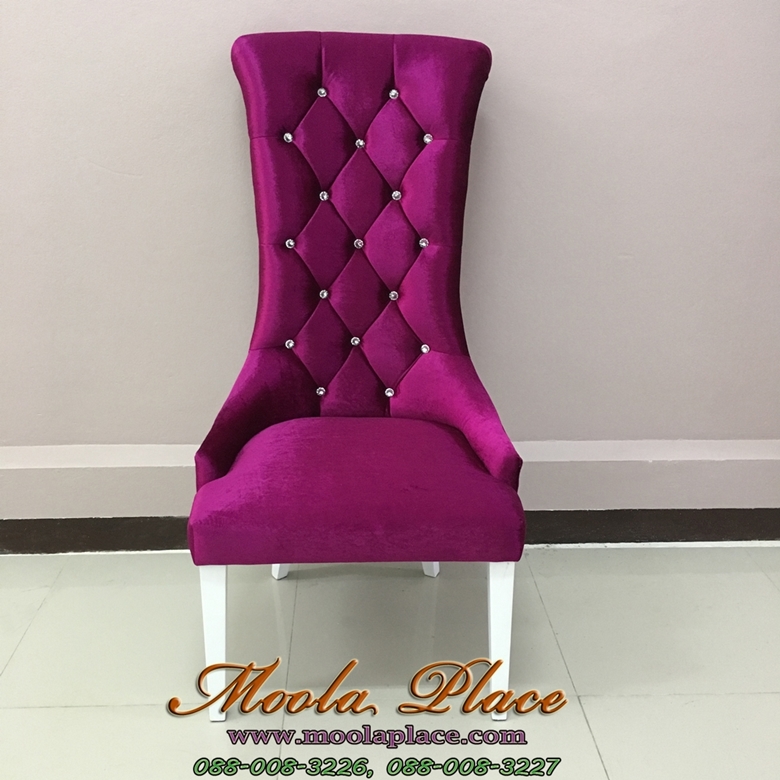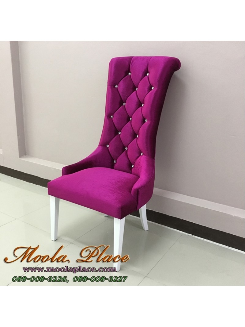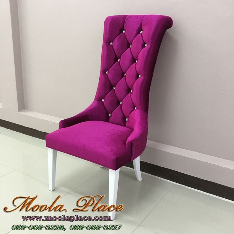 เก้าอี้พนักโค้งหลังขมวด บุผ้าผ้ากำมะหยี่ ลูกค้าสามารถเลือกสีขาและเปลี่ยนผ้าหุ้มได้..