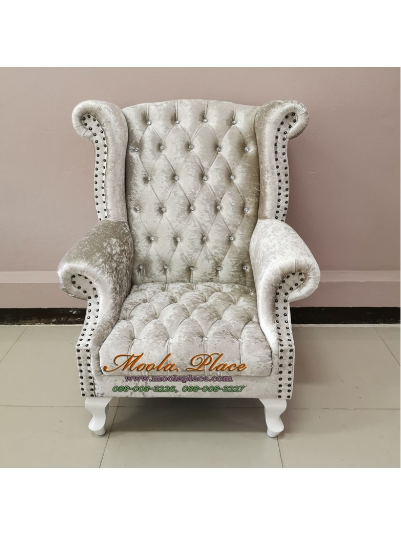 โซฟา Wing Chair 1 ที่นั่ง ปีกโค้ง ขาสิงห์สวยหรู บุผ้ากำมะหยี่ สามารถเปลี่ยนสีหนังหรือตัวผ้าได้