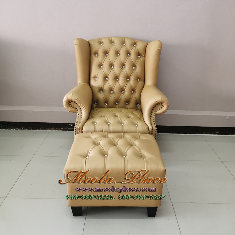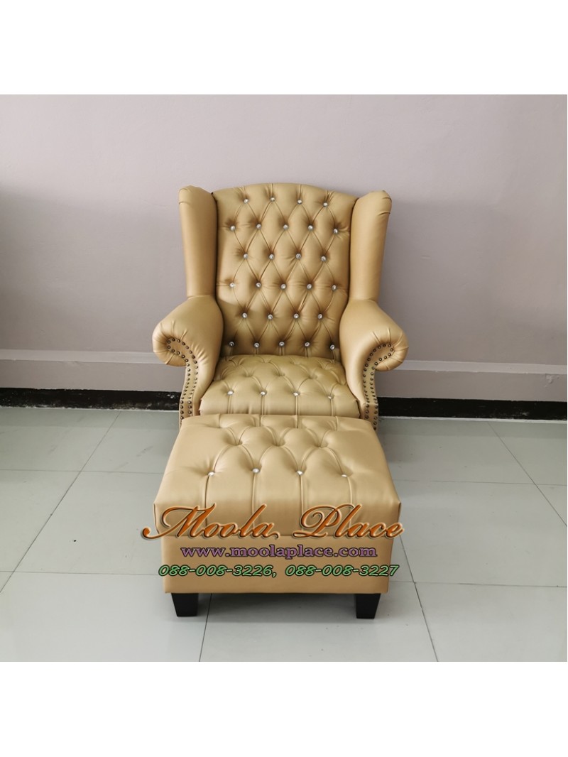 โซฟา Wing Chair 1 ที่นั่ง ขาไม้ บุหนัง PU ผ้าไหม พร้อมที่สตูล สามารถเปลี่ยนสีหนังหรือตัวผ้าได้