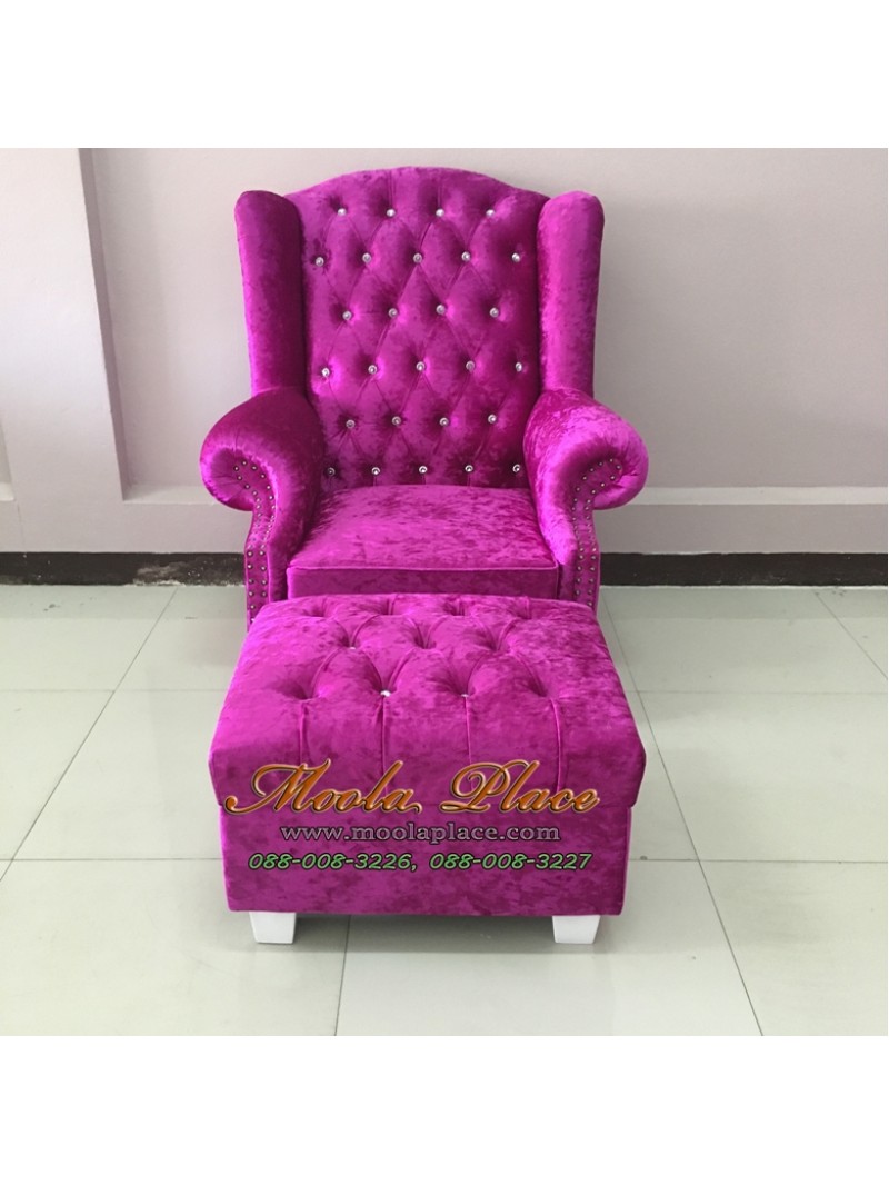โซฟา Wing Chair 2 ที่นั่ง บุผ้ากำมะหยี่อย่างดี พร้อมสตูลยาว ไม่รวมคริสตัล ขนาด กว้าง 150 x ..