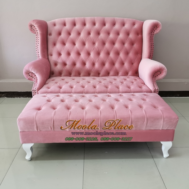 โซฟา Wing Chair สไตล์วินเทจ 2 ที่นั่ง ผลิตจากผ้ากำมะหยี่อย่างดี พร้อมสตูลที่วางเท้า สามารถเปลี่ยน..