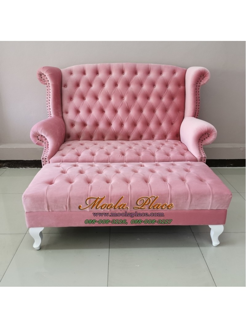 โซฟา Wing Chair 2 ที่นั่ง บุผ้ากำมะหยี่อย่างดี พร้อมสตูลยาว ไม่รวมคริสตัล ขนาด กว้าง 150 x ..